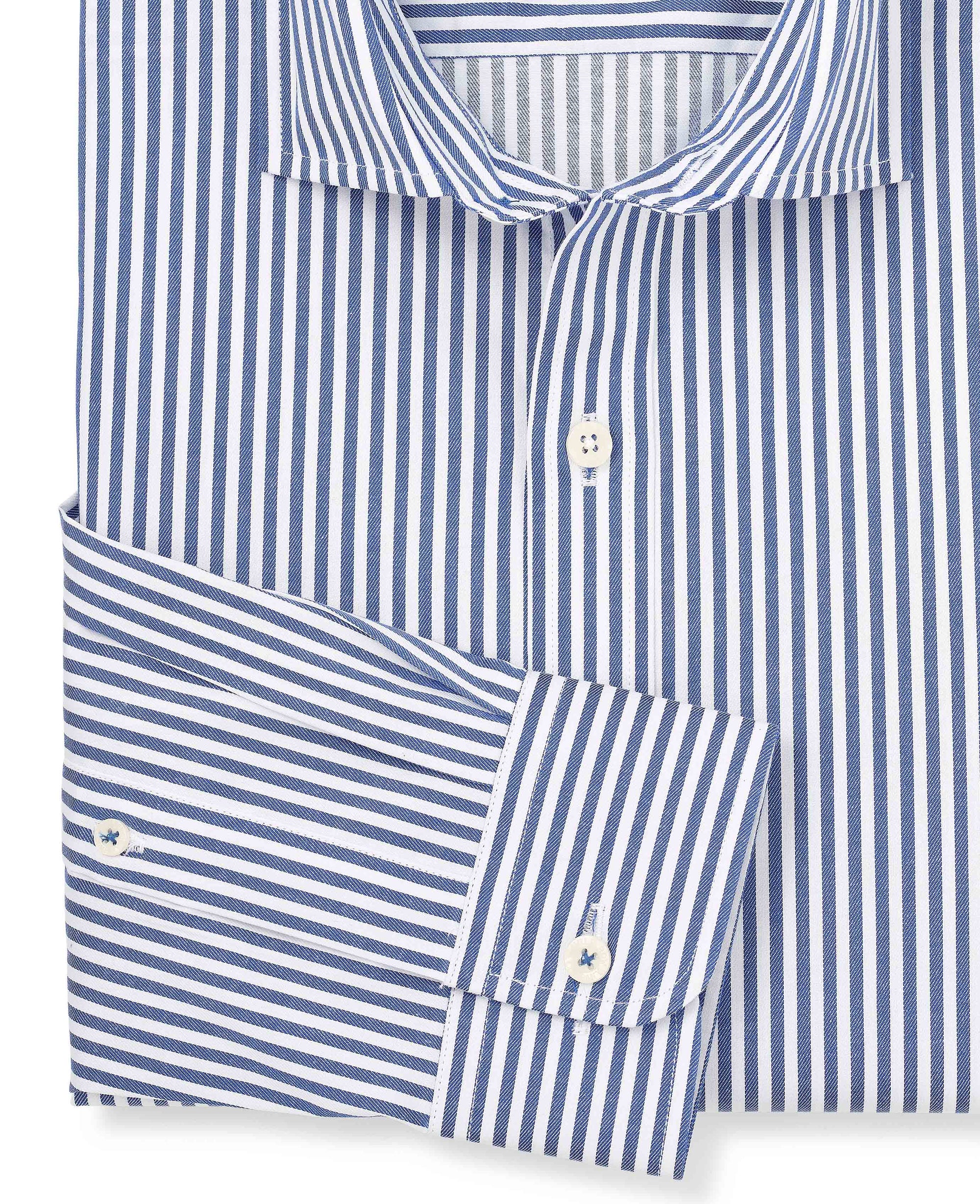 - Blue White Stretch Cotton Slim Fit Striped Smart Casual Shirt