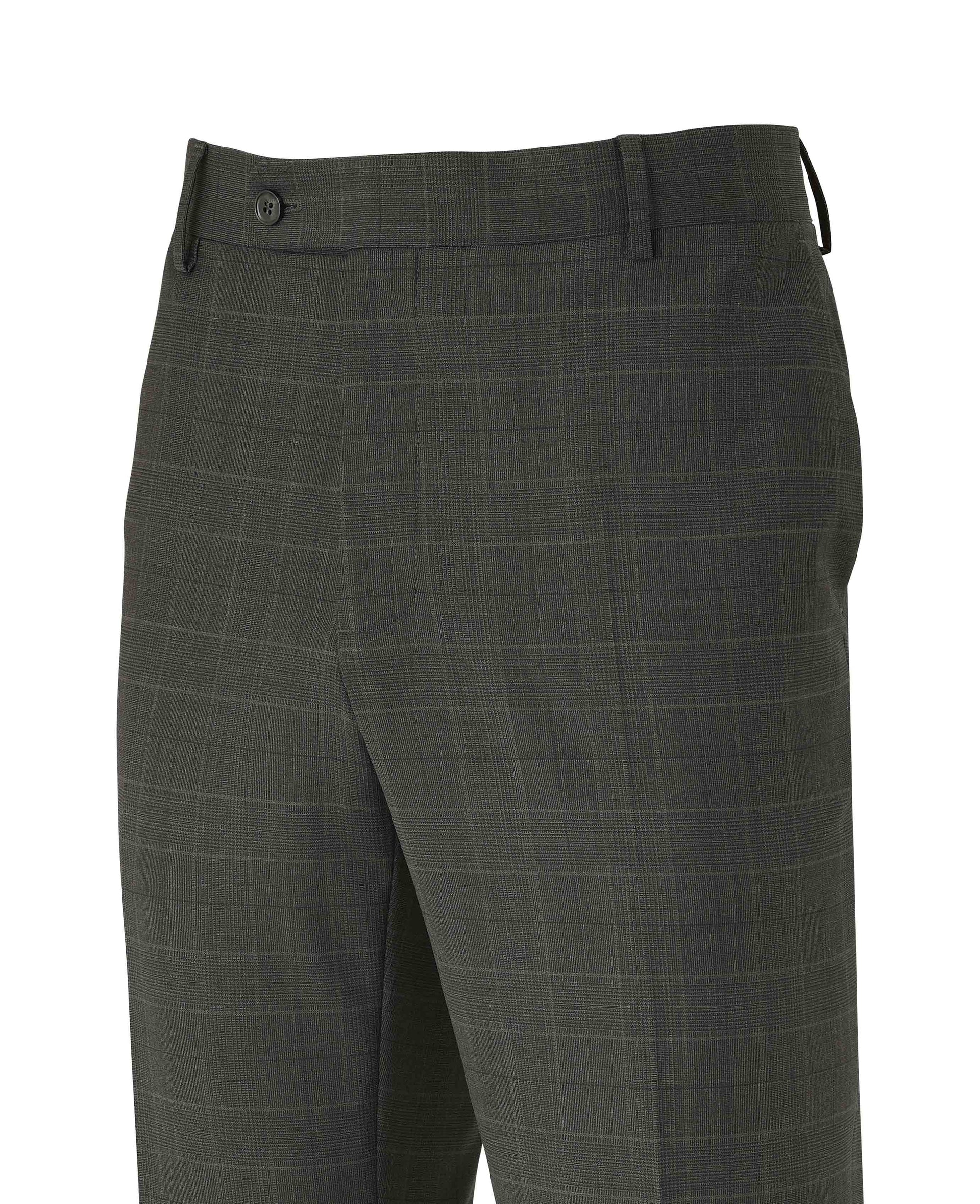 These grey Prince of Wales check trousers offer a sharp silhouette and standout pattern in one polished package. The refined check elevates your outfit without overwhelming it, perfect for those who want to show a bit of personality while keeping things professional. Crafted in a tailored fit with a straight-leg cut and flat-front design, they strike the perfect balance between tradition and modern tailoring. With your inside leg tailored to fit, and a non-slip waistband facing to keep your shirt in place, these trousers are as functional as they are stylish.