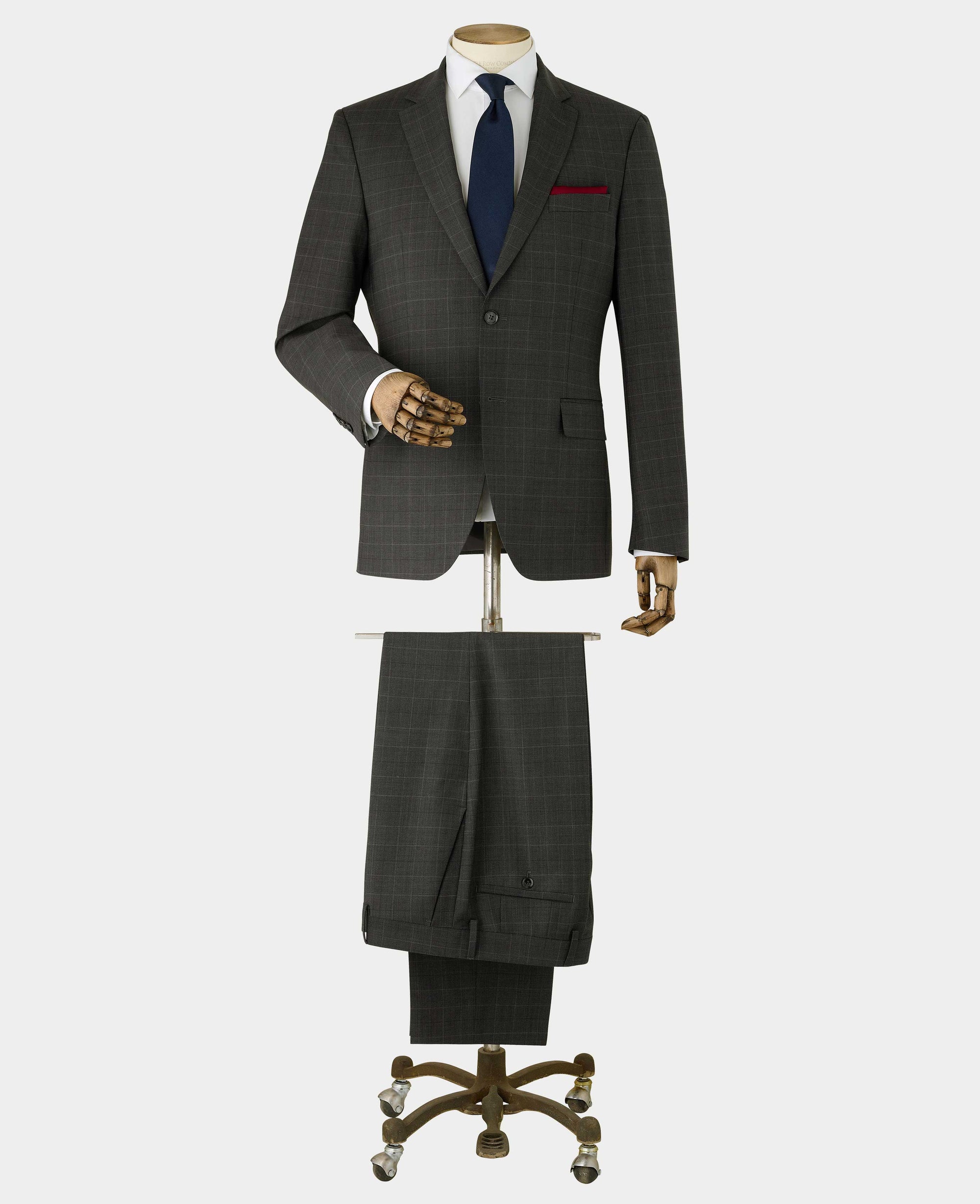 Step into timeless British style. This grey Prince of Wales check suit blends classic tailoring with just the right amount of personality. The traditional check pattern speaks to heritage and refinement, while the clean silhouette gives it a contemporary edge that turns heads for all the right reasons. Tailored to perfection, this men’s suit includes a single-breasted, two-button jacket with double back vents for comfort and mobility. The matching flat-front trousers feature a smart, straight-leg cut for a sharp, polished look.